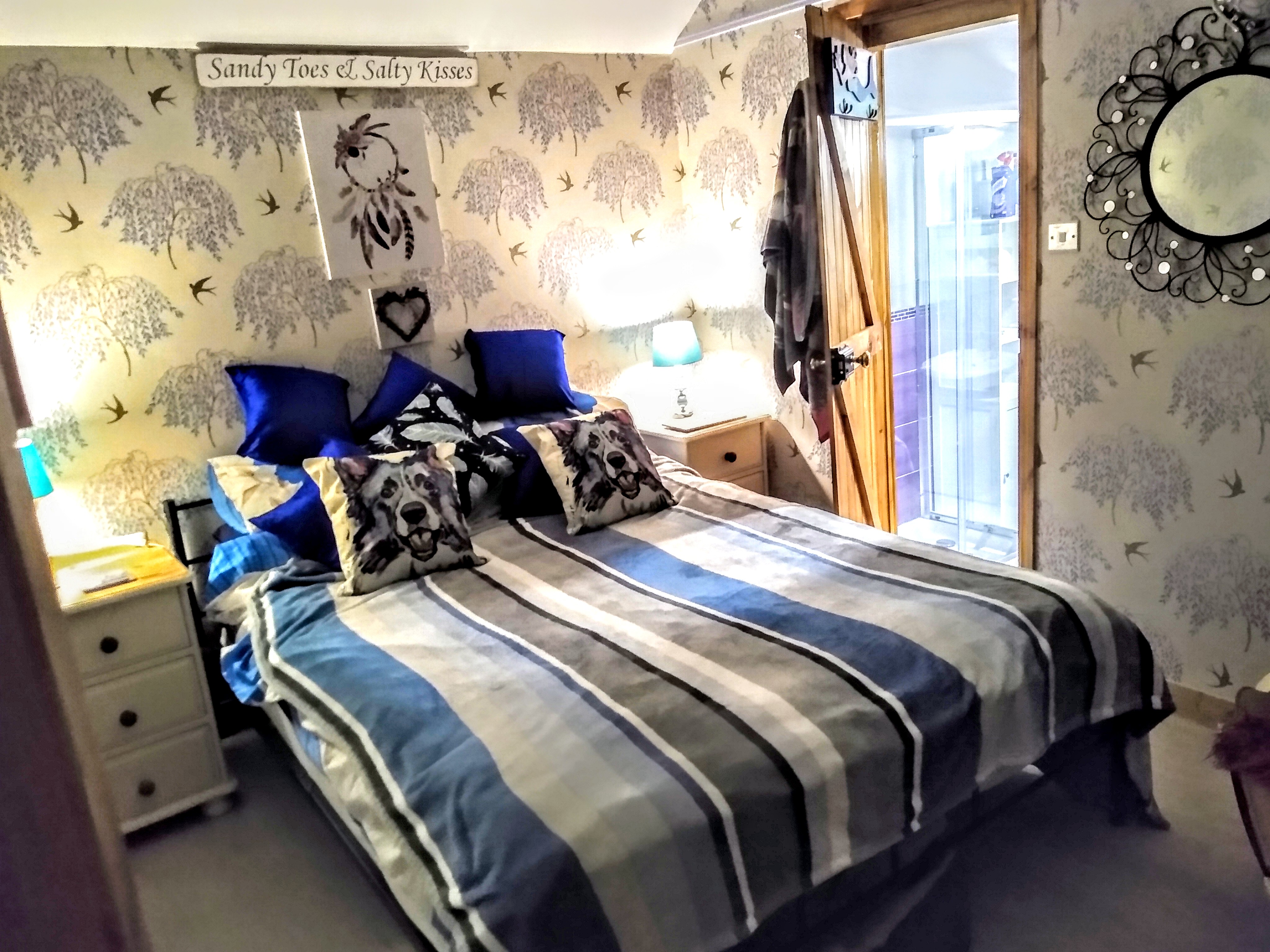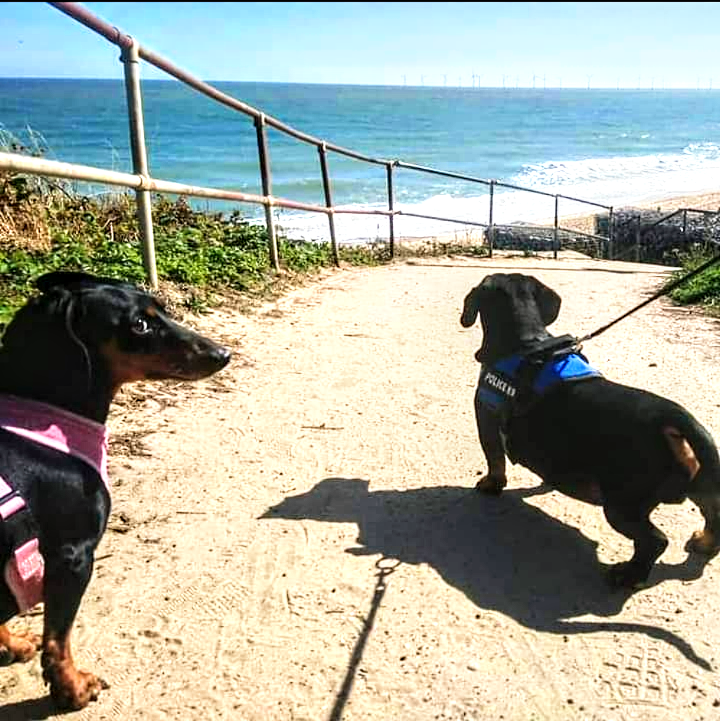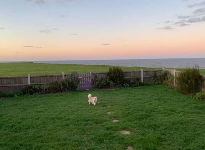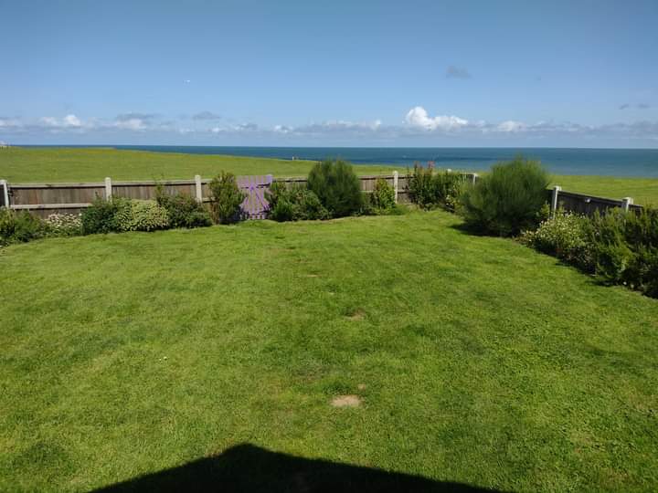 The beach (dog-friendly all year) is a few minutes walk, either along the road or along a gravel track, and has steps down to it. Beyond the garden gate is a playing field which can be used for dog-exercising or low-key ball games etc. Eves neighbours are both elderly single people so there is never noise or people passing by the gate, so great for taking reactive dogs for a break away.